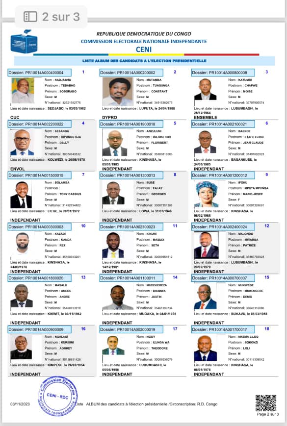 Cette liste définitive ainsi publiée par voie de presse est affichée au Siège de la CENI et est disponible sur le site web de la centrale électorale.