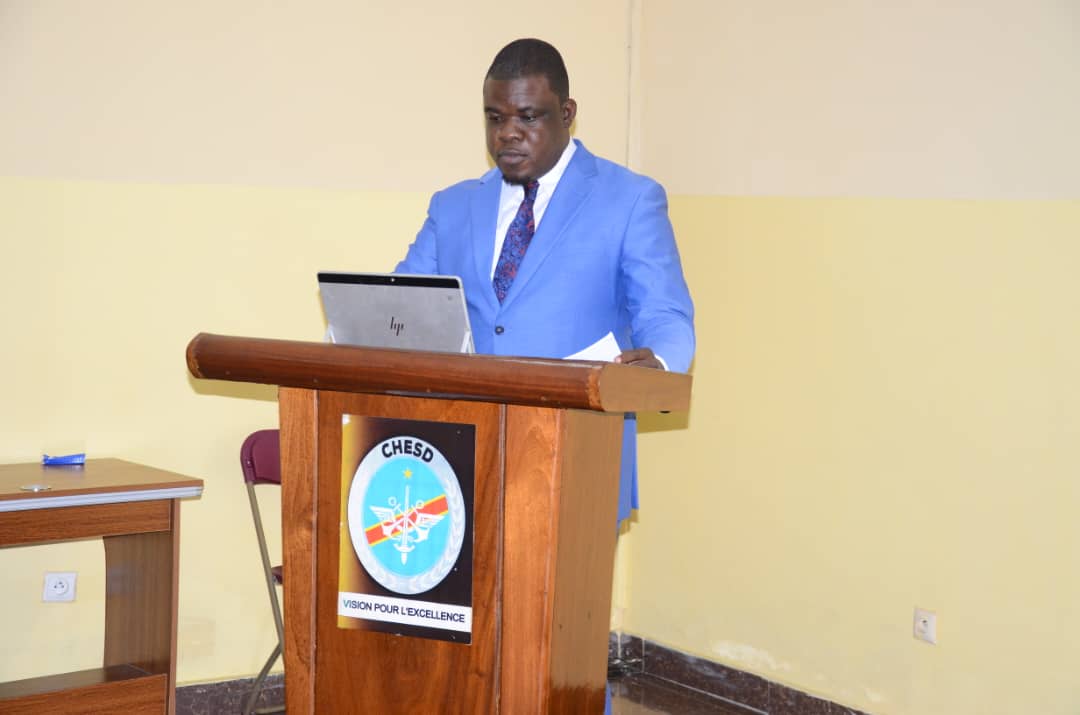 Travaillant sur un sujet qu'il a maitrisé très bien intitulé "Quelle stratégie elaborer en matière des échanges transfontaliers pour l'établissement  de la confiance mutuelle dans la région de grands lacs " , Junior Mambembe Tshiaki a eu à surprendre les membres du jury lors de cette séance  académique en présence  de plusieurs personnalités tant  scientifiques,  militaires que politiques